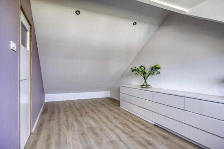 - dakkapel op zolder met slaapkamer en royale voorzolder en afgewerkte bergruimte